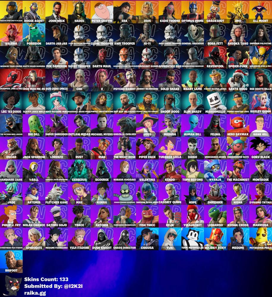 حساب سكنات مشاهير+جون ويك+رقصات حفل+حزمه انمي النادره+1000 ڤيوبكس
