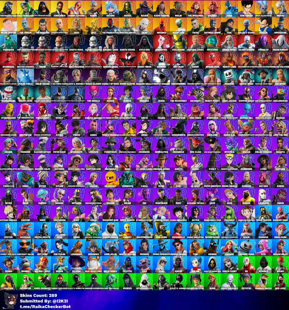 289 سكن+جون ويك+سكنات بطوله+36 سكن نادر+رقصات نادره ايتمات نادره+ايتمات مشاهير+72 ايتم نادر